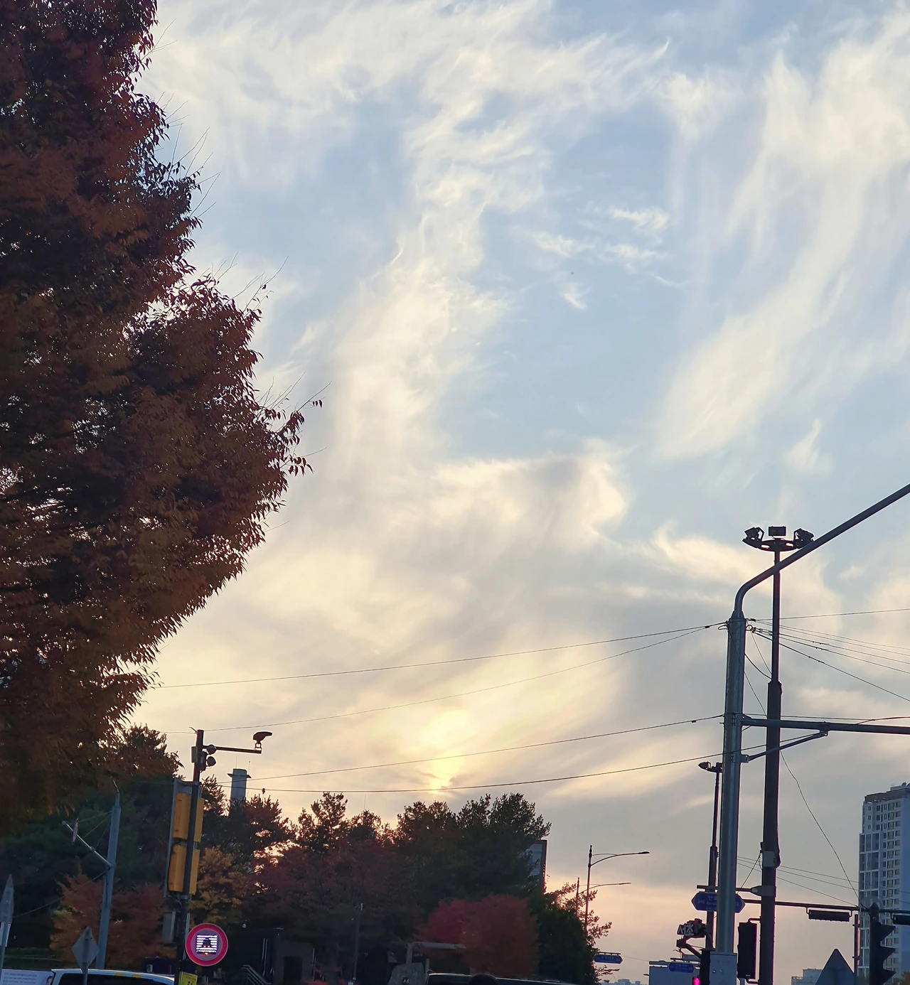 * 사진_ 병원을 이삼일에 한 번씩 자주 가야 하다 보니 점심 진료시간은 이렇게 해 질 무렵 나오는데, 그때의 하늘이 너무도 예뻐서 갑자기 걸음을 멈추고 사진으로 담아봤지만 아무리 그래도 눈으로 보는 것과는 비교가 되질 않아 아쉽습니다. 마지막 사진은 찍고 있는데 붓으로 그리는 것처럼 표현하는 옆지기의 손입니다.