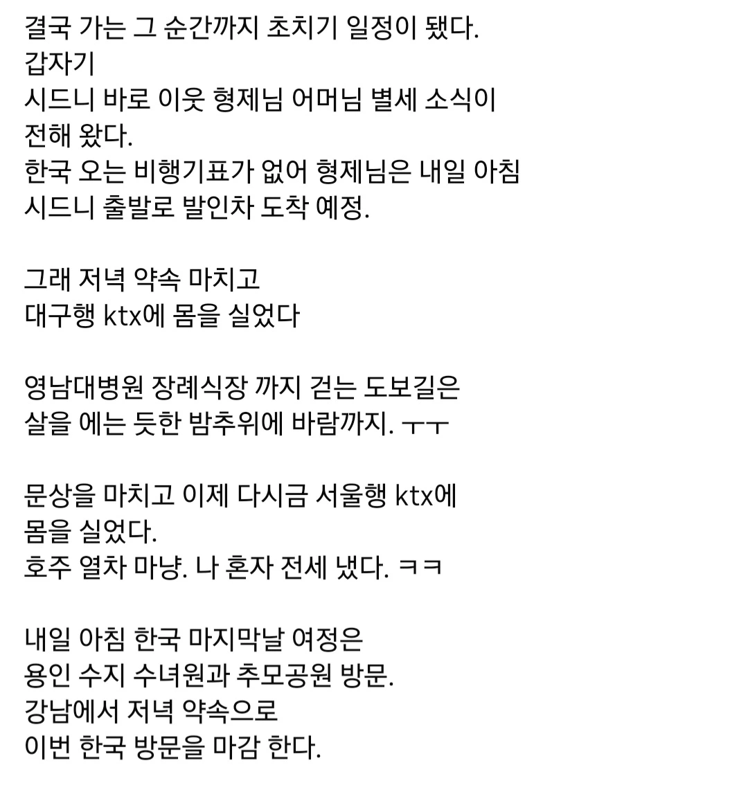 일년에 딱 한번 그것도 한시간 정도의 짧은 시간 정말 일 년에 딱 한번 그것도 한 시간 정도의 짧은 시간. 호주에 사시는 페친 벗이십니다. 작년엔 분당제생병원으로 한걸음에 달려와 주셨던. 올 해는 삼성동으로 찾아와 주셨습니다. 두 번째 뵙는 거라 더 반가웠나 봅니다. 아빠 따라가고 싶은 애처럼 짧은 만남의 헤어짐이 아쉬웠습니다. 눈도 붉어지고.