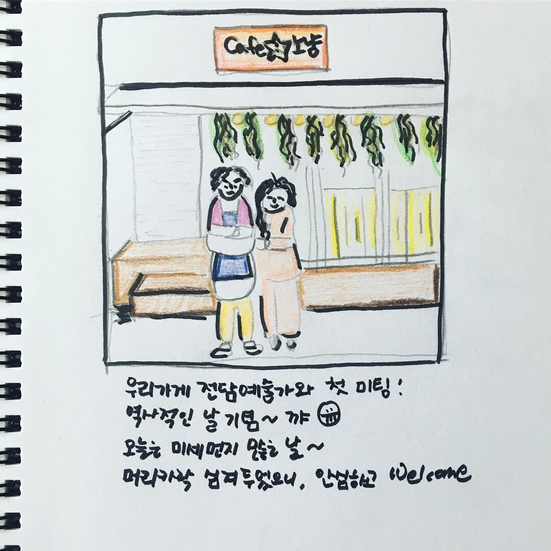 9년 동안 사회생활을 정리하고 퇴사했다. 회사 다니느라 하지 못했던, 하고 싶었던 일 중의 하나였던 그림을 그리기 시작했다. 유명한 일러스트레이터가 된다거나 이렇게 그려서 책 한권을 쓰는 작가가 되야겠다는 (나에겐 맹랑한) 거대한 '되어야겠다'는 목표는 없다(독립출판에 관심 조금 있다).