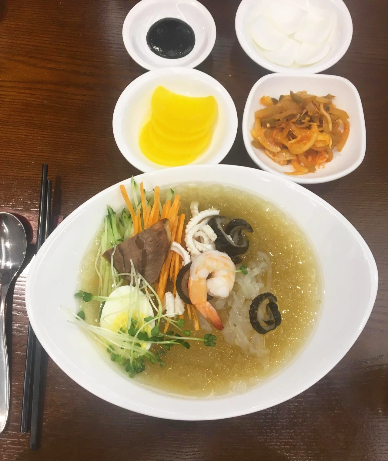 아직 무더위가 본격적으로 시작도 안됐는데 더위를 먹으니 자꾸 시원한 것만 당기네요. 원래 함흥냉면 좋아하는데, 오늘은 평양냉면 종류를 시켰으니 말 다했죠.