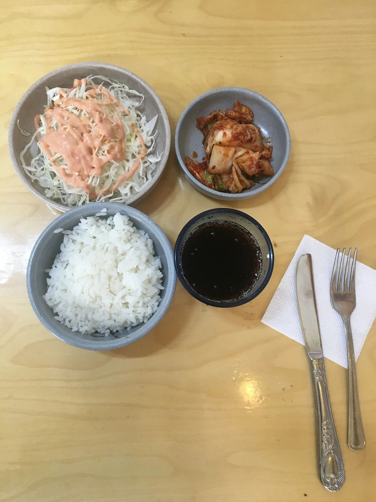 간판은 20대 때 갔던 그대로인데 내부 인테리어는 싹 바뀌었네요. 다행히 음식의 맛은 그대로네요. 케첩마요네즈 양배추랑 직접 갓 담근 배추겉절이 그리고 메인 치킨 닭스테이크!