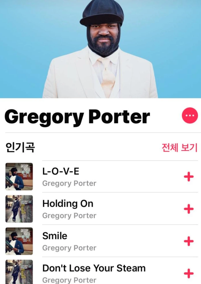 갇힌 공간에서 오랫동안 가사가 있는 음악을 들으려면, 최대한 힘을 빼고 말하듯이 부르는 재즈 가수들 곡이 최고더라고요. 한 번 들어보시면 내가 서 있는 곳이 순식간에 여유로운 그 어떤 장소로 바뀔 겁니다. 낭만이 있는 목소리, 그레고리 포터 곡도 강추합니다.