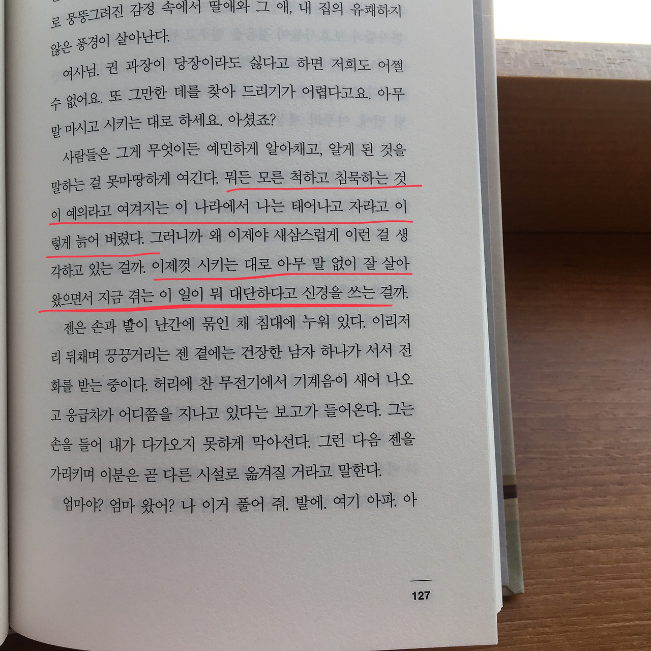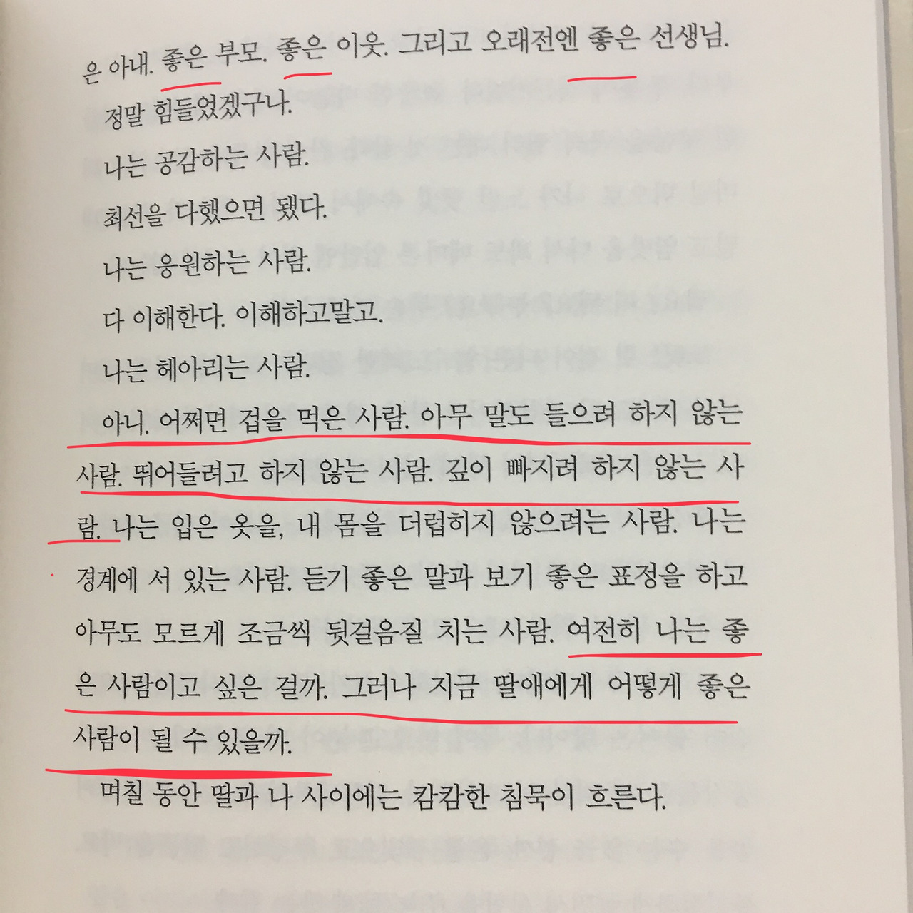 소설 속 엄마는 딸애가 다른 평범한 이들처럼 살길 바란다. 이 세상 모든 엄마들이 같은 마음이지 않을까. 엄마가 딸을 바라보는 관점과 시선을 제삼자의 입장에서 감정 이입해 볼 기회가 있어서 유익했다.