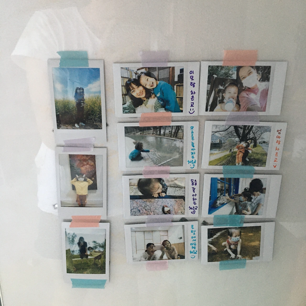 지난 주말, 종로구립 혜명아이들 상상놀이터에 다녀왔다. 플라스틱 장난감 대신 마스킹테이프와 털실 등으로 아이들이 놀잇감을 스스로 만들어 놀도록 해놓았다. 그 여백과 테마가 무척 마음에 들었다. 그곳에 다녀와서 마스킹테이프를 무지개색으로 구비했다. 아이가 불투명한 거실 창에 테이프를 붙이고 놀았다. 에어컨에도 폴라로이드를 잔뜩 붙였다. 마스킹테이프가 거실을 아주 조금 다른 공간으로 만들어줬다.