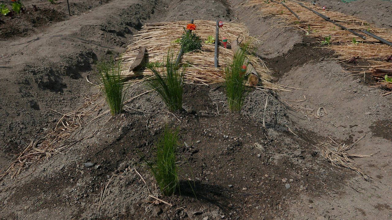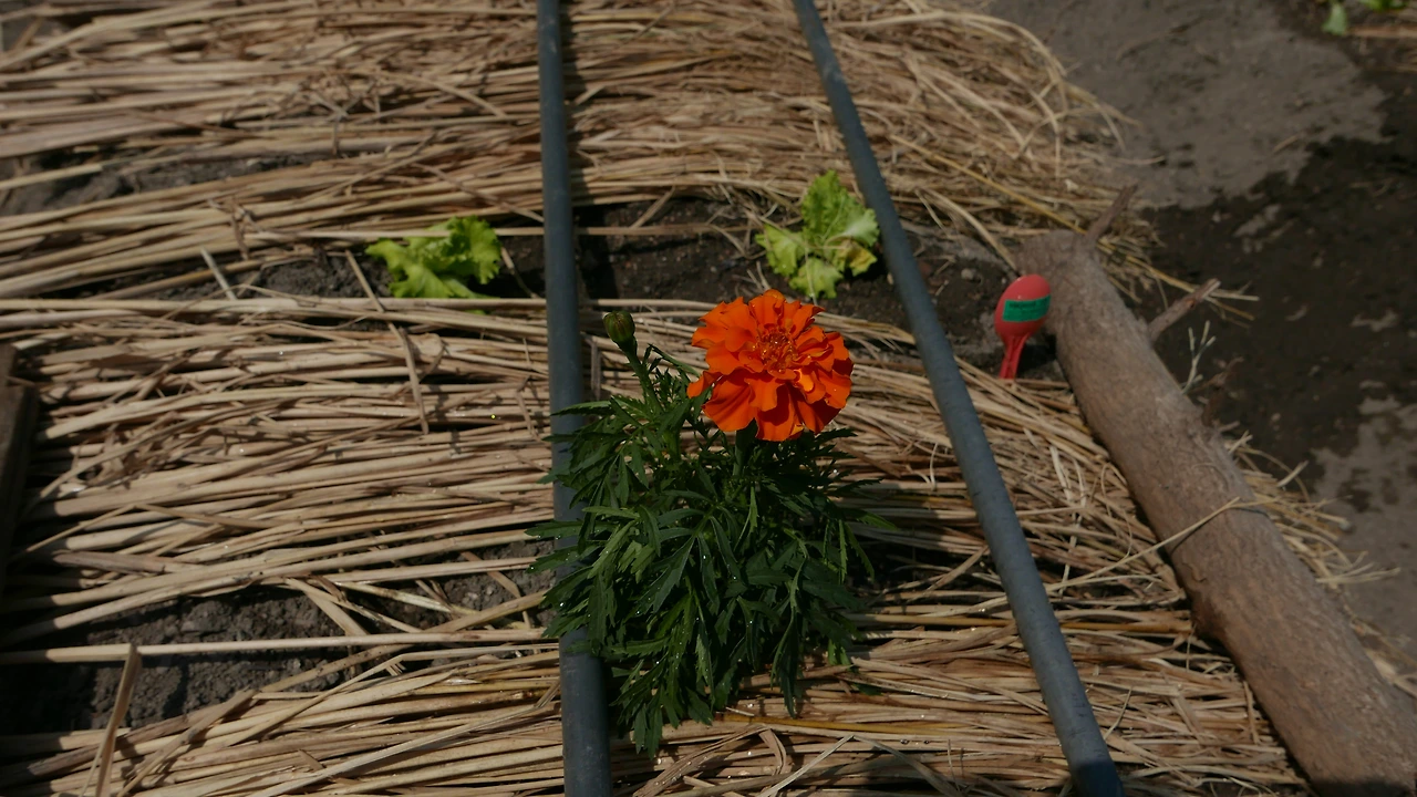 이건 솔방울이 준 금잔화다. 작물들 사이에 심으면 해충들을 유인해서 작물에 벌레가 덜 꼬이도록 해준다. 아직은 어린 작물들 사이에 색감이 또렷한 꽃 한송이가 심어져 있으니 분위기가 무척 화사해졌다.
