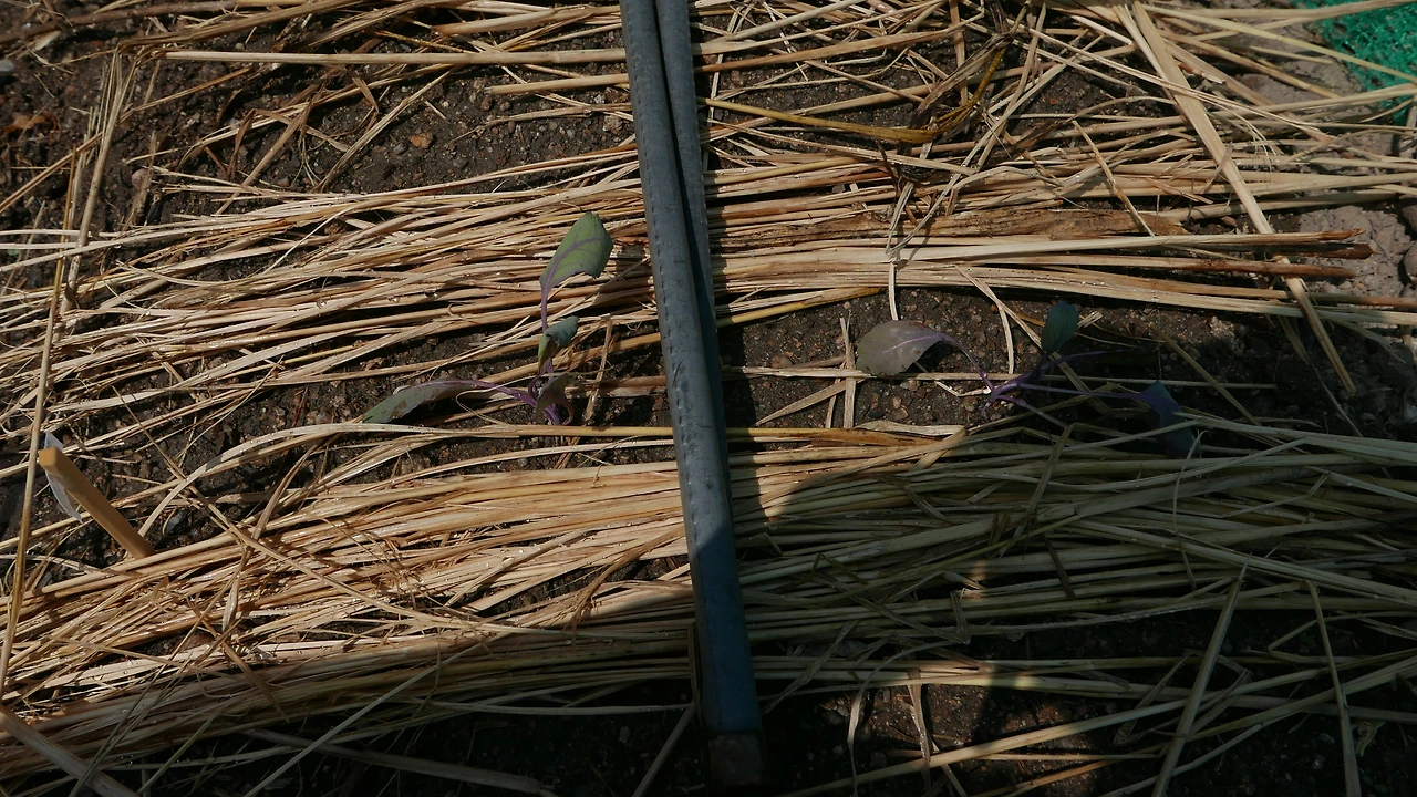 그림자에 가려서 거의 보이지 않지만 겨자채다. 어른들이 좋아하는 쌈채소중 하나. 마트에서 사먹는 겨자채는 매운맛이 강한 편이다. 노지텃밭에서 키운 겨자채는 적당한 매운맛과 상큼함이 가미되어 있다. 그래서 겨자채의 톡쏘는 맛을 싫어하는 어른들도 잘 먹을 수 있는 채소다.