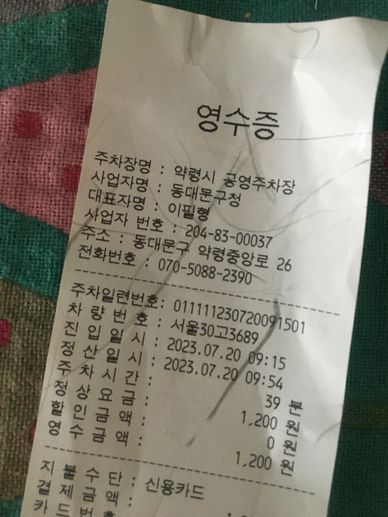 40분동안 장을 보고 주차요금 1,200원을 지출했다