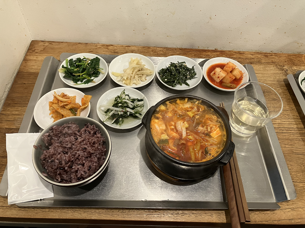 전라도입맛이라 소금 간을 추가해서 오늘 메뉴 중 하나였던 닭개장을 싹싹 긁어먹었어. 배터지게 야무지게. 친구는 된장찌개를 맛봤지. 이날 무를 싫어하는 친구의 취향을 발견했어. 편식 없이 잘 먹는다고 생각했는데 비릿한 무의 맛을 좋아하지 않는다는 걸 이제야 알았네.
