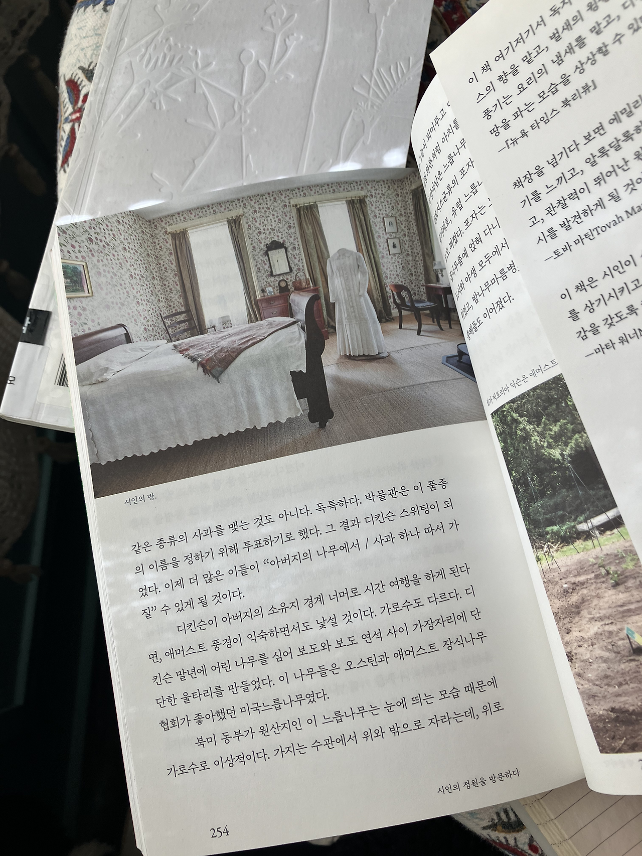 살아생전에 디킨슨의 방 인테리어를 보고 나중에 집을 구하면 그런 느낌으로 꾸미고 싶다고 이야기했어.