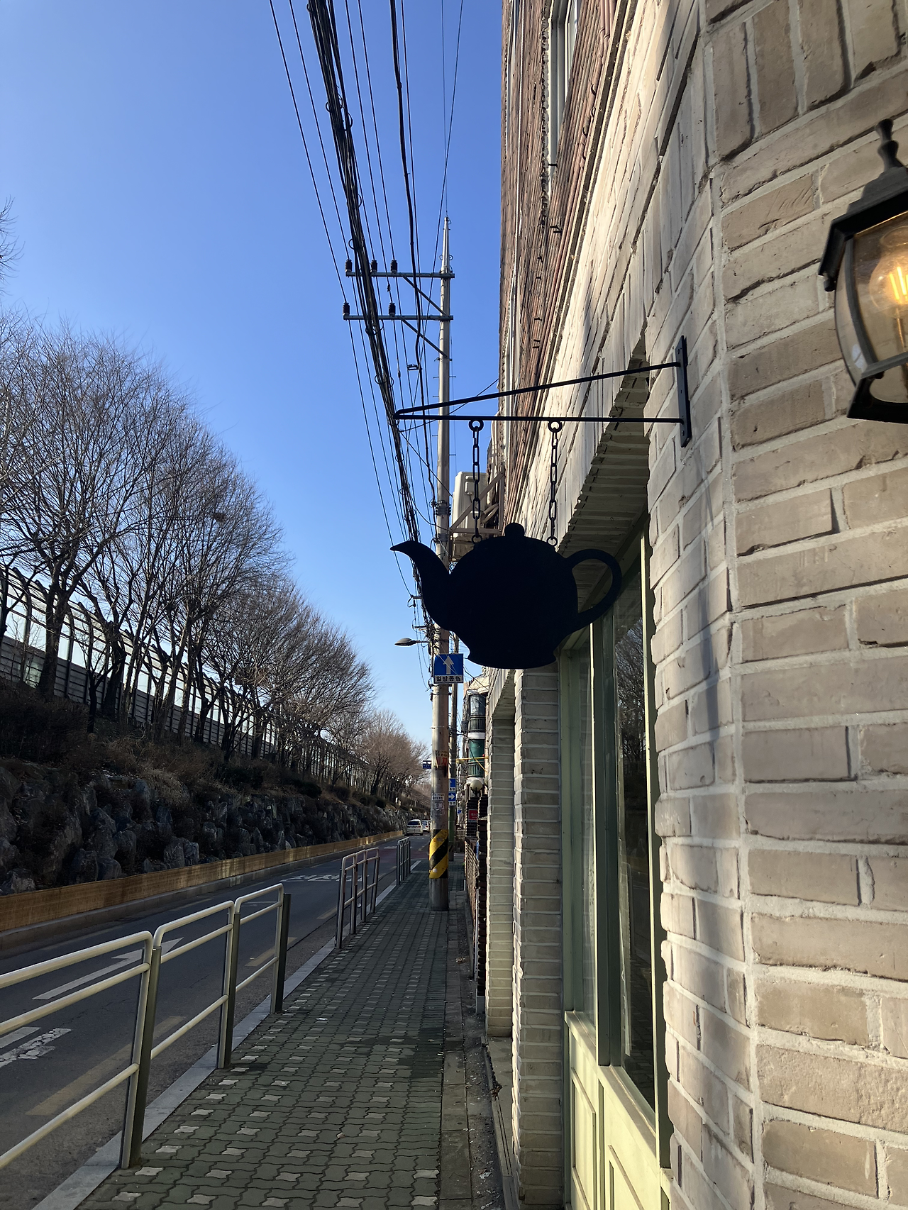 우리는 밥을 먹고 카페로 향했어. 밥먹고 카페 코스 오랜만이야. 카페 이름은 <뚝방길홍차가게>였어. 왜 뚝방길인지 걸으면서 알았어. 가게나 브랜드 이름은 심오하거나 어렵거나 있어 보일 필요가 없겠어. 정체성만 뚜렷하면 되니까.