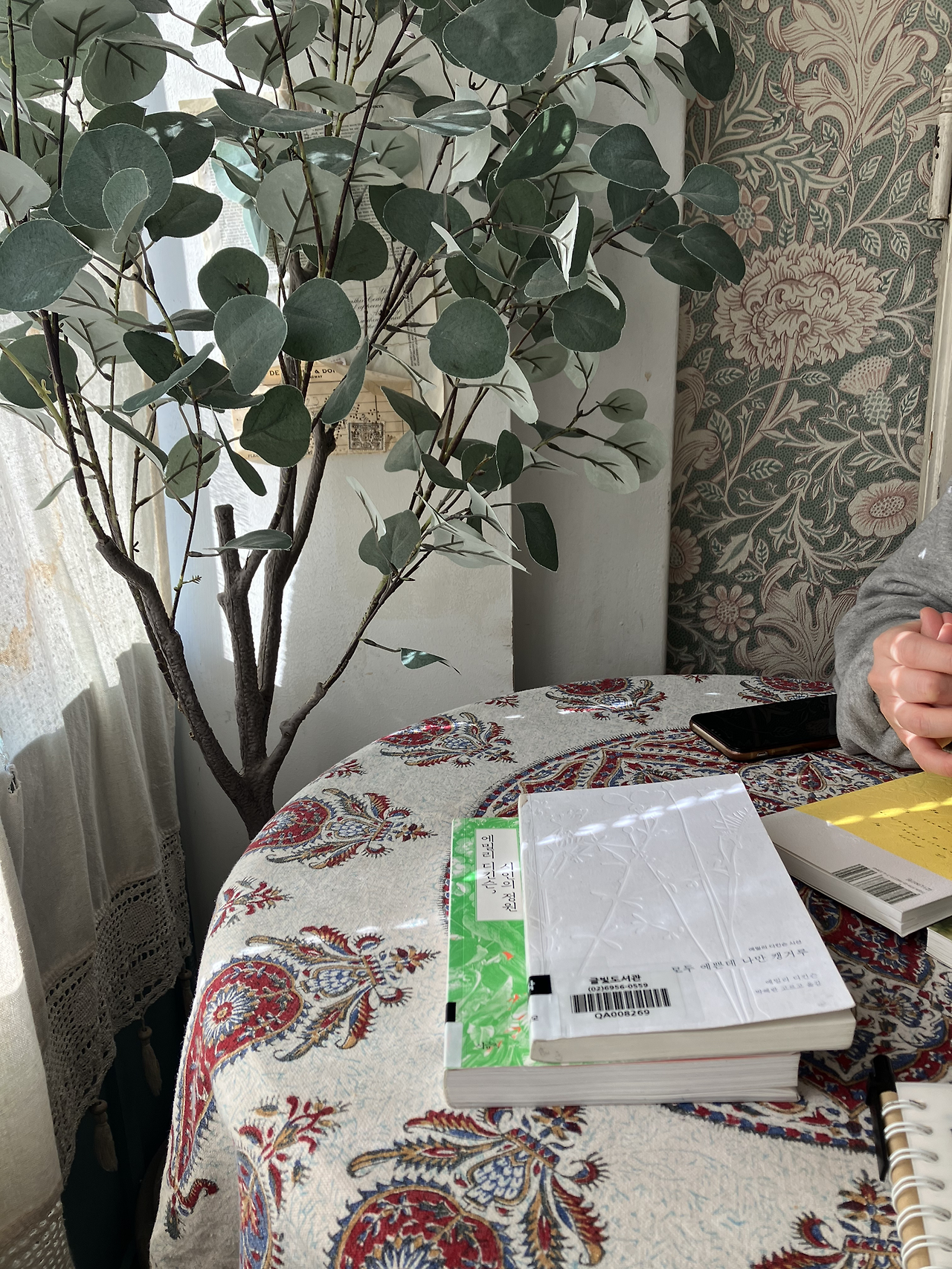 책 속 프린트벽지 느낌이 뚝방길홍차가게에 있더라고. 오늘의 시와 홍차 그리고 공간의 삼박자가 맞아떨어졌어.