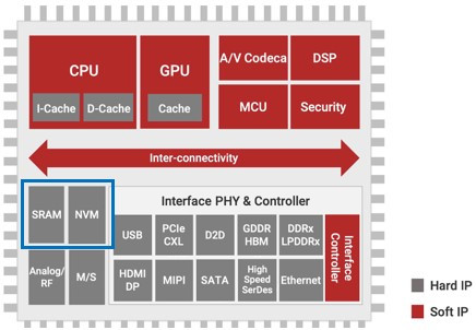 네 맞습니다.파운드리 업체들은 팹리스가 자유롭게 활용할 수 있도록 각 공정 별 메모리 회로를 제공하고 있습니다. 여기서 말하는 메모리 반도체는 SK하이닉스 혹은 삼성전자 메모리 사업부의 DRAM 혹은 NAND Flash 메모리를 의미하지는 않습니다.