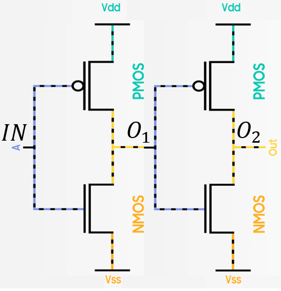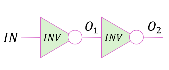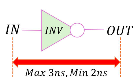 인버터 셀 하나에 대해, Input 신호를 넣었을 때 Output 신호가 변환되기까지 최대 3ns, 최소 2ns 소요된다.