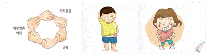 가려움증 ☞ 자주 긁어 ☞ 피부 손상 ☞ 염증 악화 ☞ 가려움증 더욱 심해지는 악순환