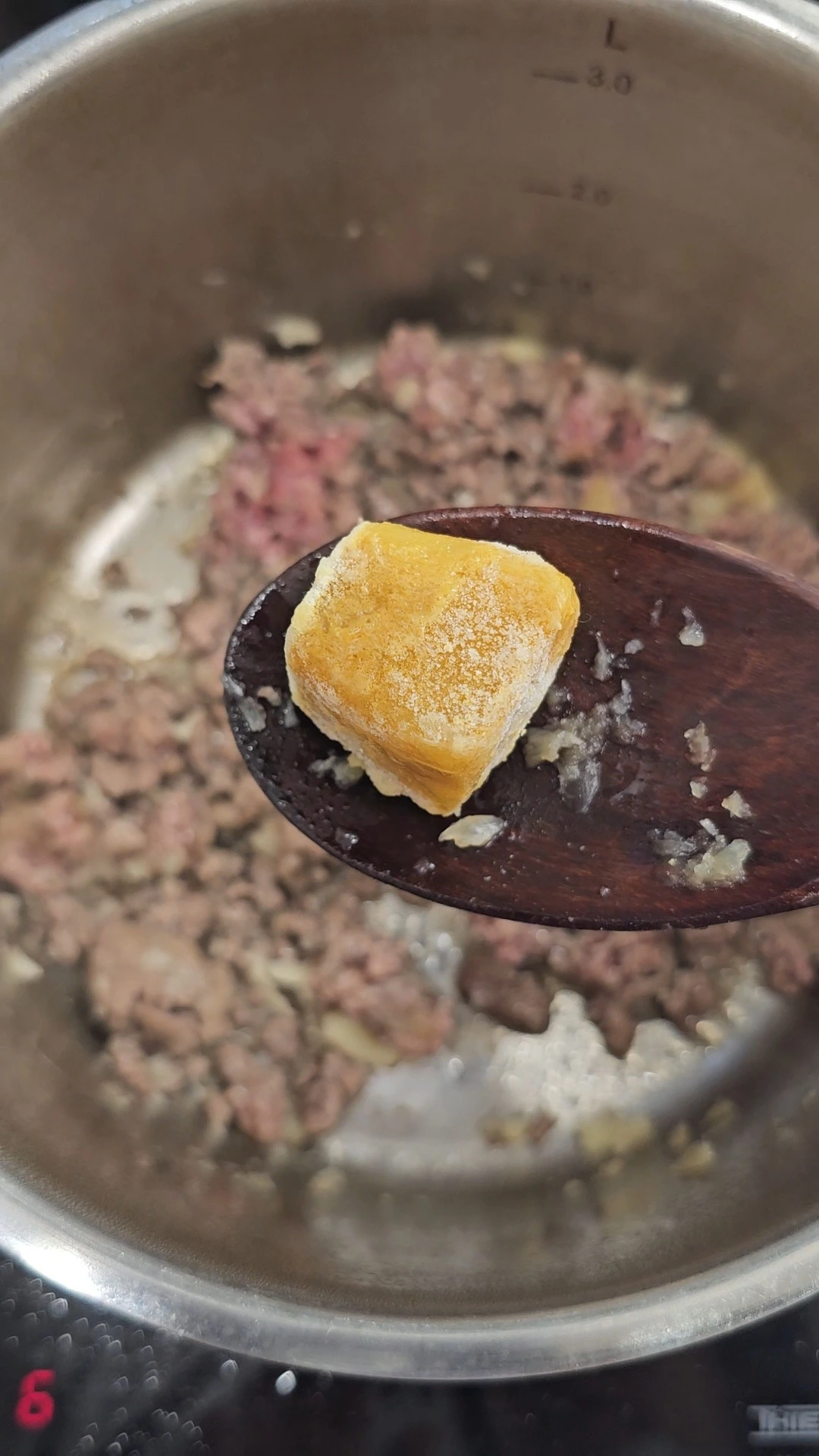 (옵션) 냉동실에 있던 소고기라 잡내를 없애기 위해 생강즙도 함께 넣었다.