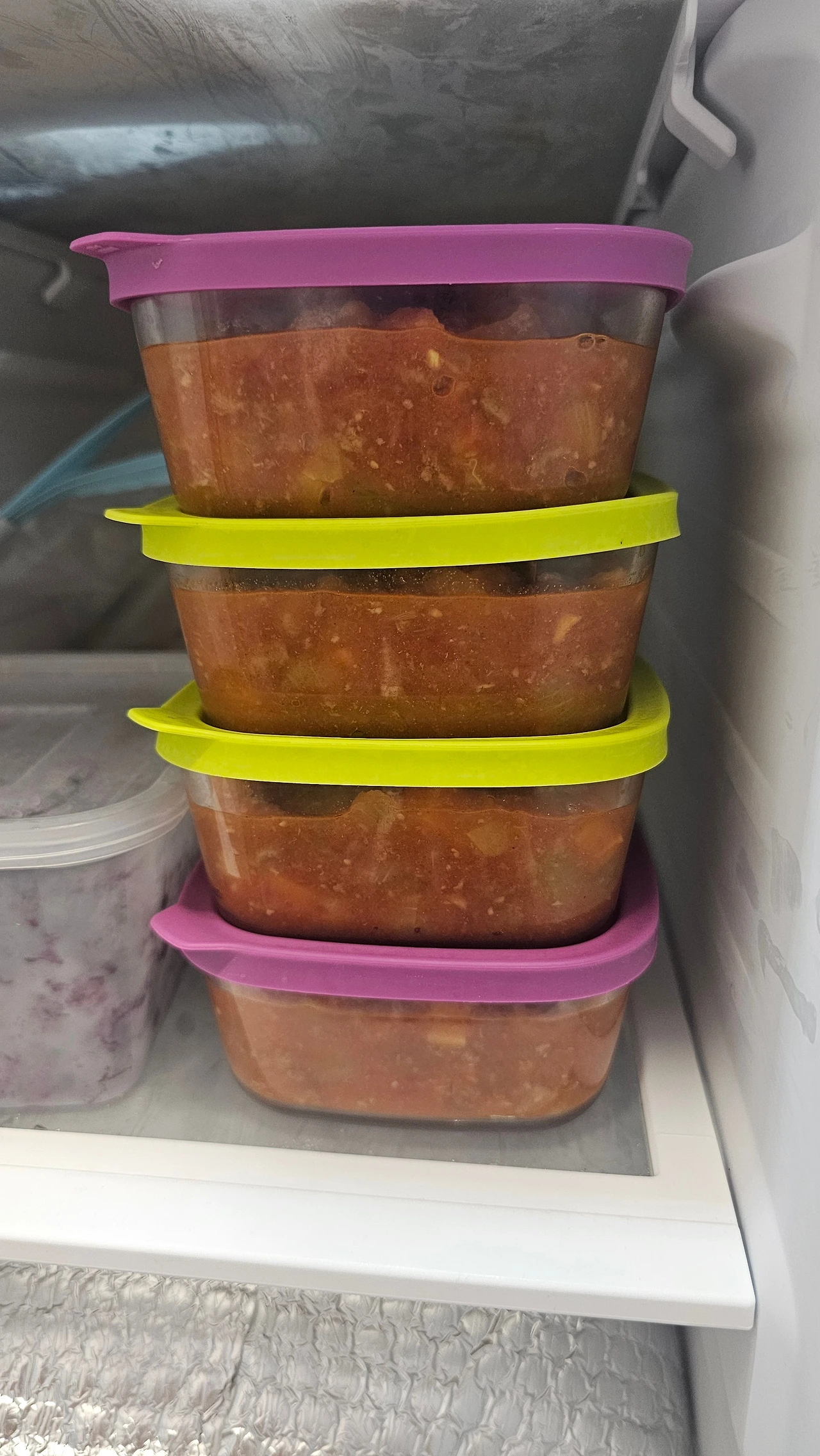 남편과 아이가 집을 떠난 지 1주일이 지났을 무렵 냉장고에서 이걸 발견했다. 일명 마녀 수프라고 불리는 토마토 수프였다. 마녀 수프는 마녀가 수프를 만드는 것 같다고 해서 지어진 별칭이다. 소고기 볶고 토마토에 각종 야채 다 때려 넣고선 만들어 두었다.