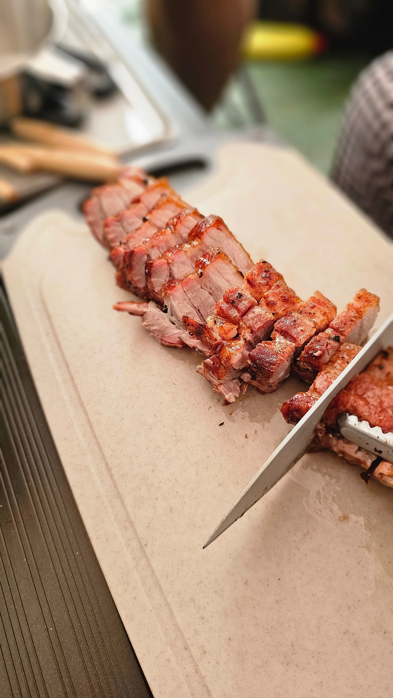 주 메뉴 통삼겹 바비큐 구이는 처음부터 끝까지 그의 손 끝에서 탄생했다. 통삼겹에 올리브 오일, 소금 후추를 뿌렸다. 그릴에 통 삼겹을 올리고 옆에는 훈연칩을 함께 담았다. 삼겹살 고기 중심에는 온도계를 심는다. 내부 온도를 75도까지 올리면 맛있는 통삼겹 바비큐 구이가 완성된다. 삼겹살에 신 김치와 빨간 콩나물 무침을 함께 구워주기도 했다. 다음날 아침엔 먹고 남은 고기에 라면을 끓이기도 했다. 그의 음식은 유명 맛집 이상이었다.