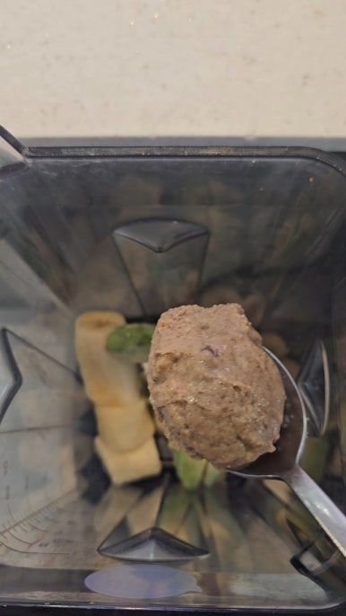 견과류 버터를 넣어 단백질과 고소한 풍미를 추가했다. (이전글 https://brunch.co.kr/@doctorkidney/173 참고) 견과류는 대표적인 건강 식단이다. 견과류를 갈면 견과류에 있는 지방이 배출되어 부드러운 버터가 된다. 단백질, 불포화지방산, 마그네슘, 칼륨과 같은 비타민, 미네랄, 식이섬유가 풍부하다. 고소한 맛으로 맛을 더욱더 풍부하게 해 준다.