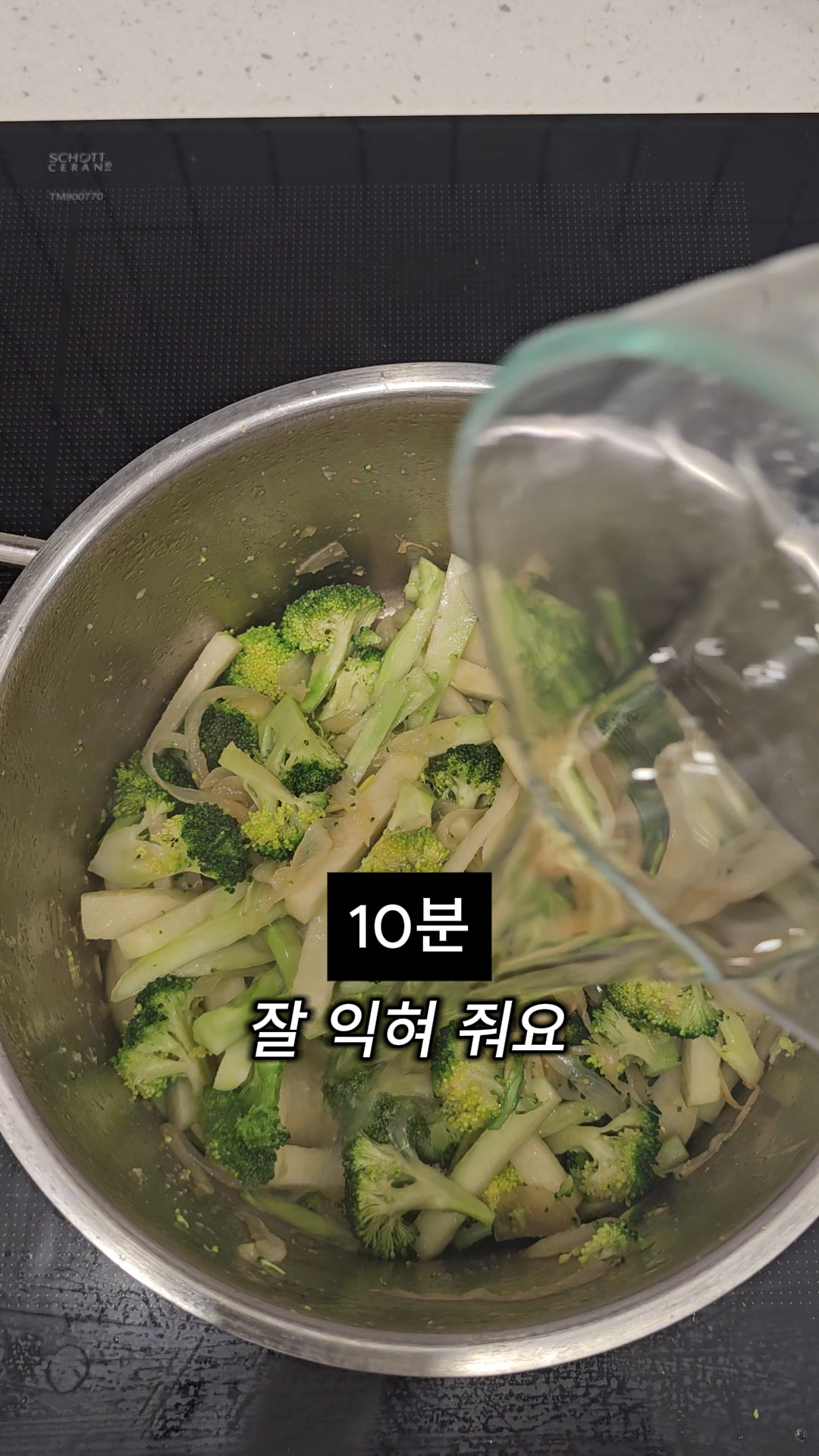 6. 물 200 ml를 넣고 뚜껑을 덮고 10분간 익혀준다.