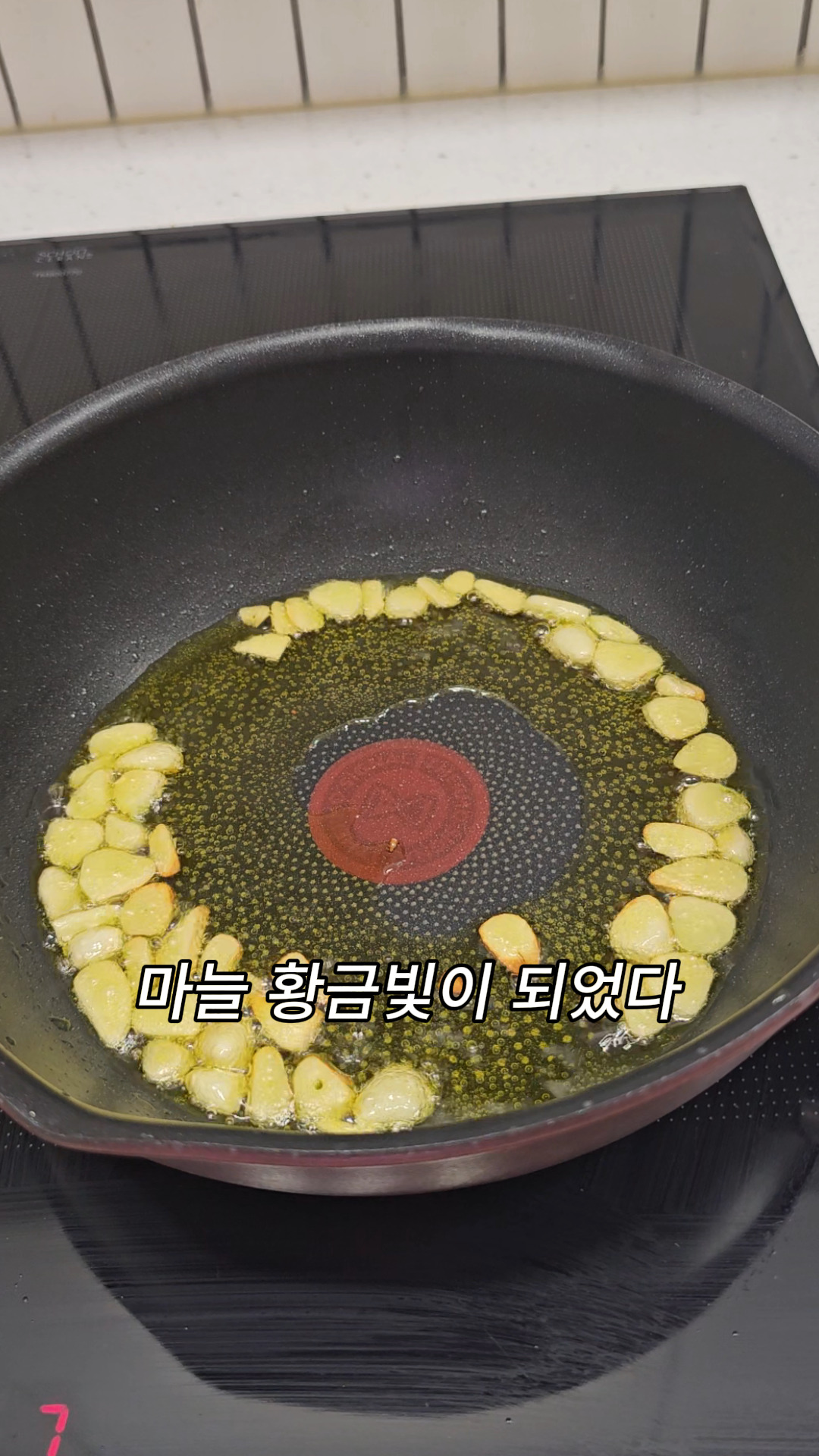 4. 편 썬 마늘을 넣고 마늘향을 낸다.
