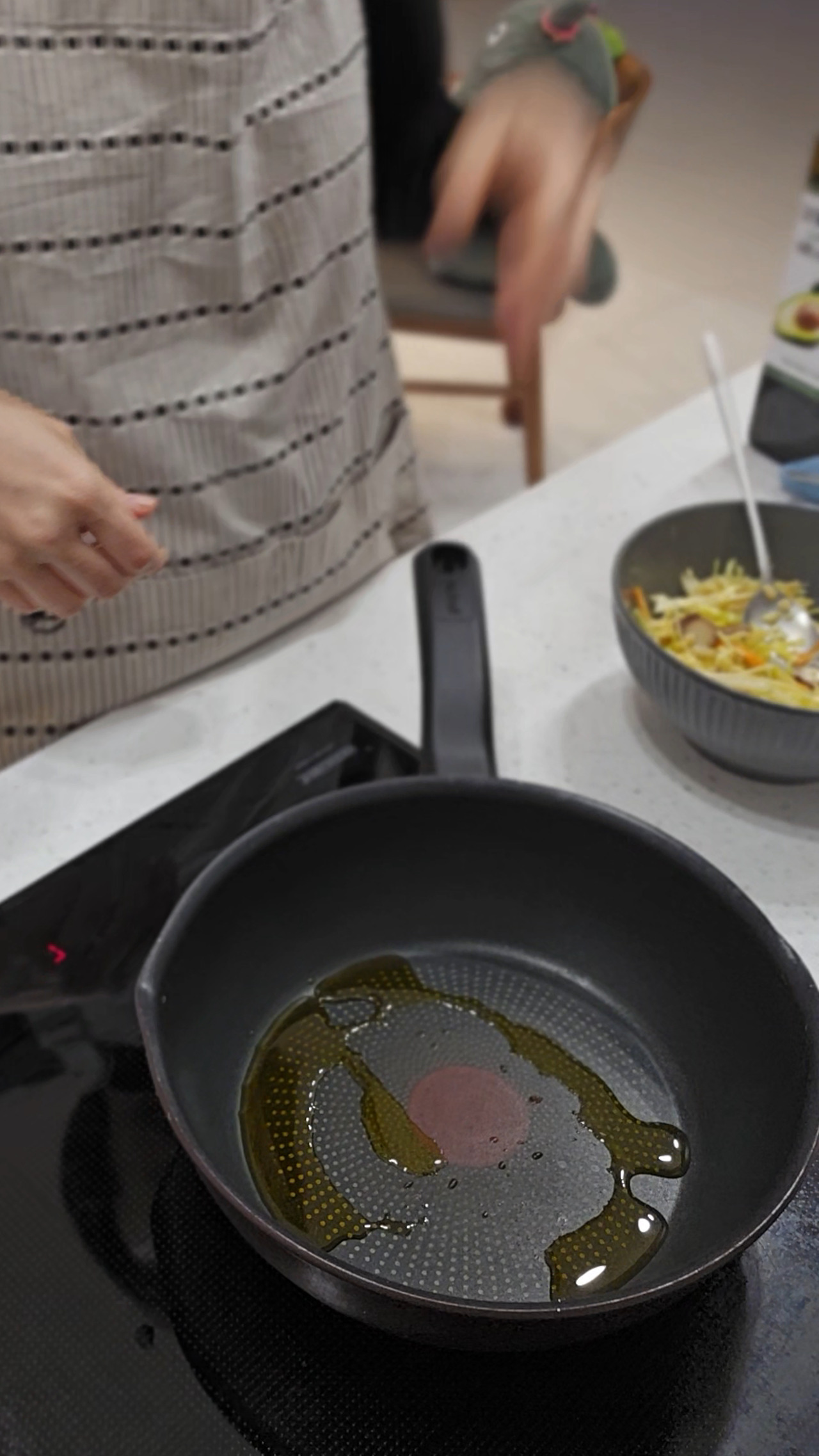 3. 팬을 중불로 예열하고 기름을 약간 두른다.