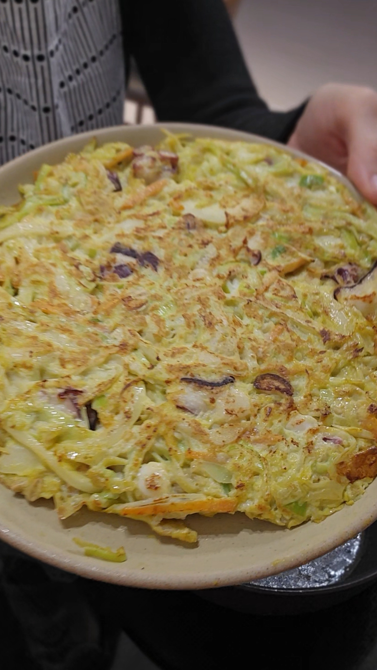 앞서 설명한 레시피대로 구우면 2판 정도가 나온다. 혼자도 2판을 모두 다 먹어도 450Kcal 정도밖에 안 나온다. 일반 오꼬노미야끼의 절반 수준이다. 저칼로리 고영양가 양배추 오꼬노미야끼는 식이 섬유와 단백질이 풍부할 뿐 아니라 맛까지 훌륭해 다이어트 식단으로 처방하기에 완벽에 가까운 음식이었다. 입맛 까다로운 딸아이도 한 입 먹어보더니, 생각보다 맛있다고 해주었다.