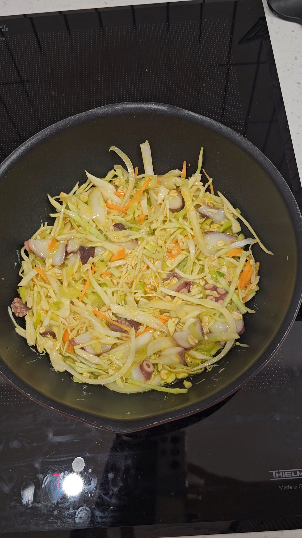 포화지방이 많은 고기 대신 문어나 해산물을 사용하면 쫄깃한 식감도 살리고 맛을 다채롭게 할 것이라 생각했다. 몇 번의 시행착오 끝에 완성된 레시피는 이렇다: