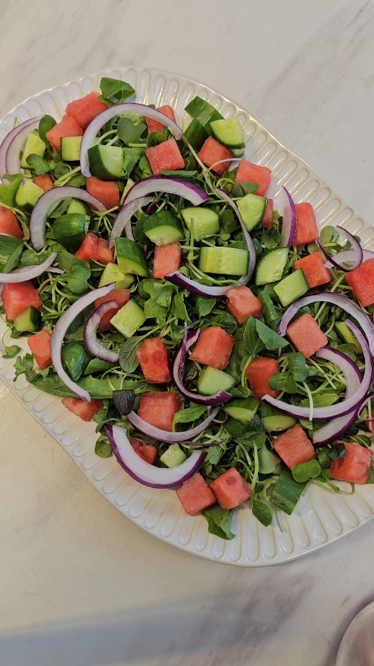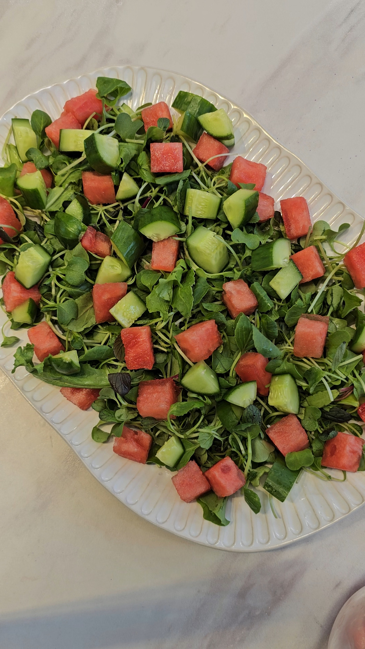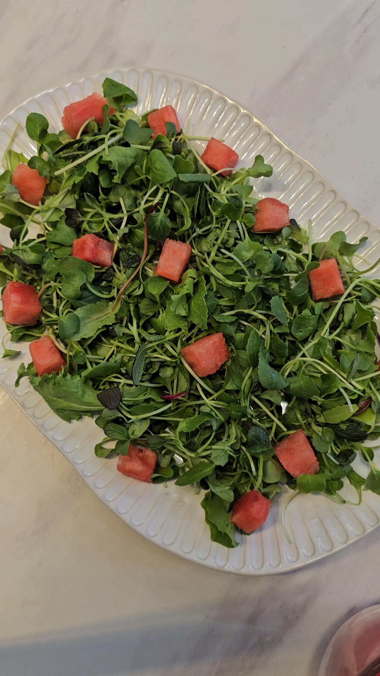 요즘 아침으로 수박 샐러드를 만들어 내고 있다. 다이어트한다는 남편에게도 적당한 수박 섭취량이다. 진짜 맛은 대비에서 나온다. 수박의 단맛이 더 달게 느껴지는 건 채소의 쓴맛 덕분이겠다. 수박의 달콤함은 녹색 잎채소의 쌉쌀한 맛을 만났을 때 더욱 빛이 난다.