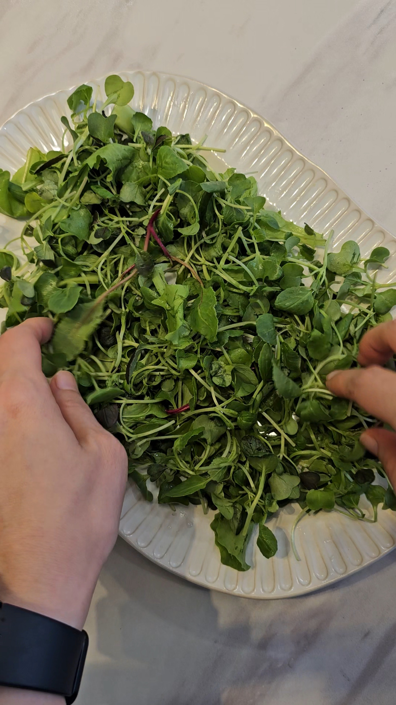 1. 녹색 잎채소를 깨끗이 씻어 접시에 깔아준다.