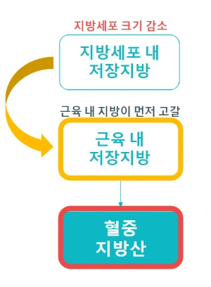 일단 운동을 통해 혈액 속에 있던 지방이 소모가 되면 그때부터는 '근육'에 저장된 지방을 가져다 쓰게 됩니다. '근육'에 저장된 지방까지 모두 사용하게 되면?
