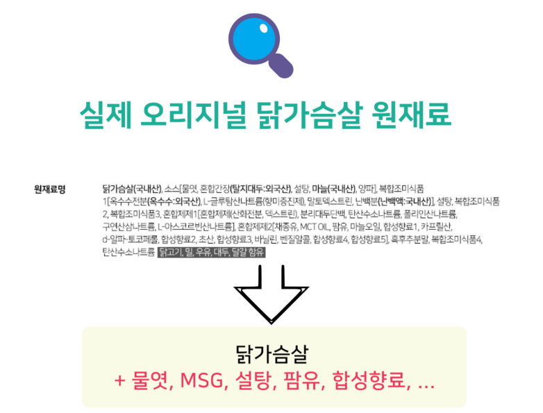 예) 닭가슴살 완제품 → 순살 닭가슴살 정육