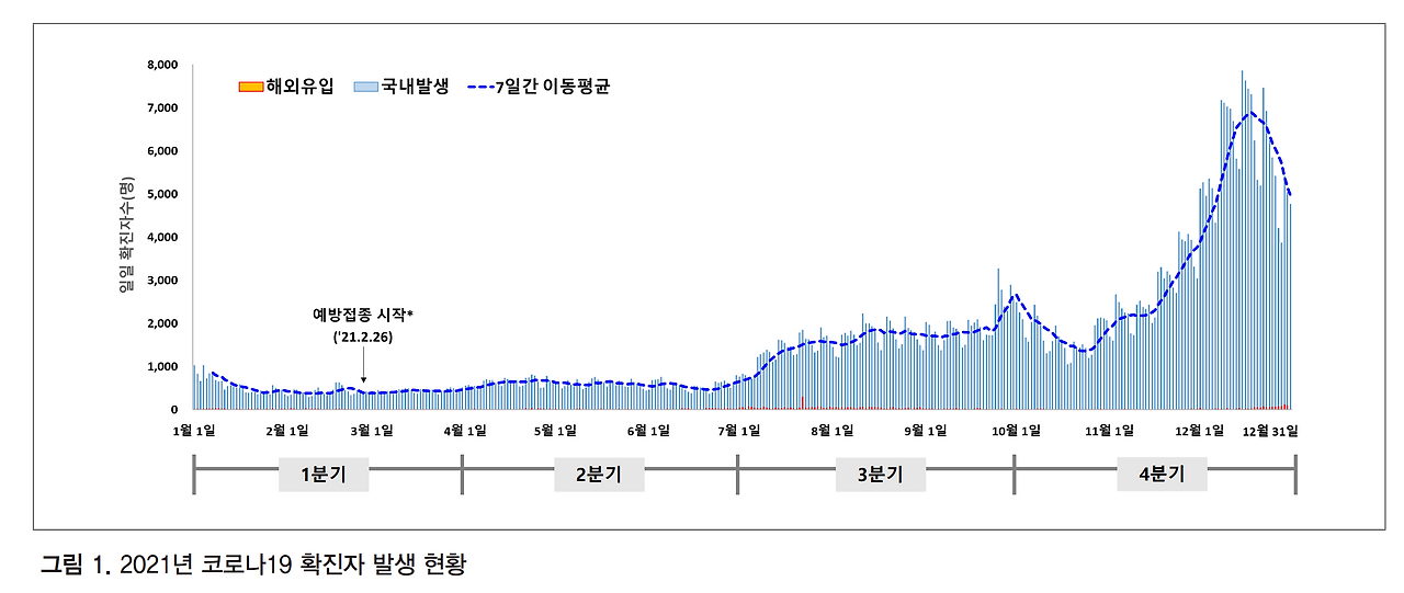22. 질병관리청. <2021년 국내 코로나19 확진자 발생 주요 특징>. 2022.1.27.