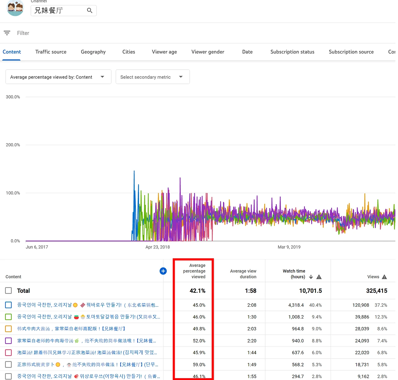 ⑤ 兄妹餐厅. 유튜브 스튜디오 데이터. 2017.6-2012.9.