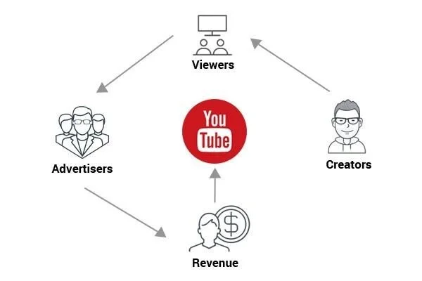 왜 그럴까요? 근본적인 관점에서 살펴봅시다. 유튜브는 누구나 영상을 올려 같은 취향을 공유하는 플랫폼이지만, 사실 비즈니스를 위한 플랫폼입니다. 구글이 돈을 벌기 위해 운영하는 플랫폼이라는 뜻입니다. 구조는 간단합니다. 구글은 광고주에게 본인들의 프로덕트를 광고할 가상의 공간을 내어주고, 이 가상의 공간이란 크리에이터들의 채널과 채널의 영상들을 뜻합니다. 기가 막히게 선순환 구조를 짠 것이에요.
