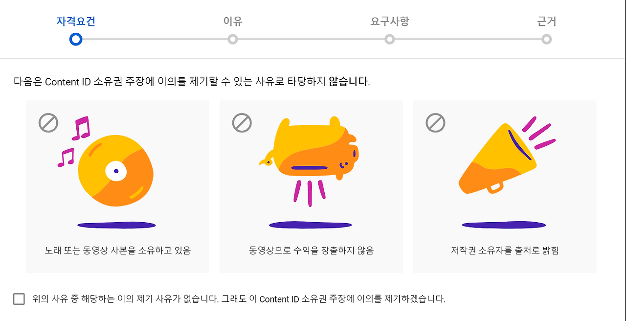 ex) “유튜브 스튜디오에 ‘중요 알림 : “동영상에 저작권 침해 신고가 제기되었습니다. 저작권 소유자가 ‘~~~~’ 동영상 일부에 소유권 주장을 제기했습니다. 저작권 위반 경고는 아니라는 사실에 유의하세요”
