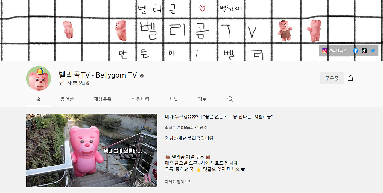 ④ '벨리곰TV - Bellygom TV' 유튜브 채널