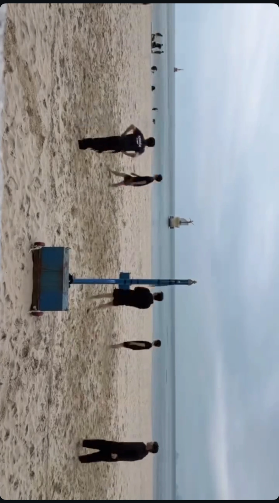 사진은 비바람을 맞으면서 바닷가에 입수 내기 배구 시합을 하고 있는 나와 친구들이다.