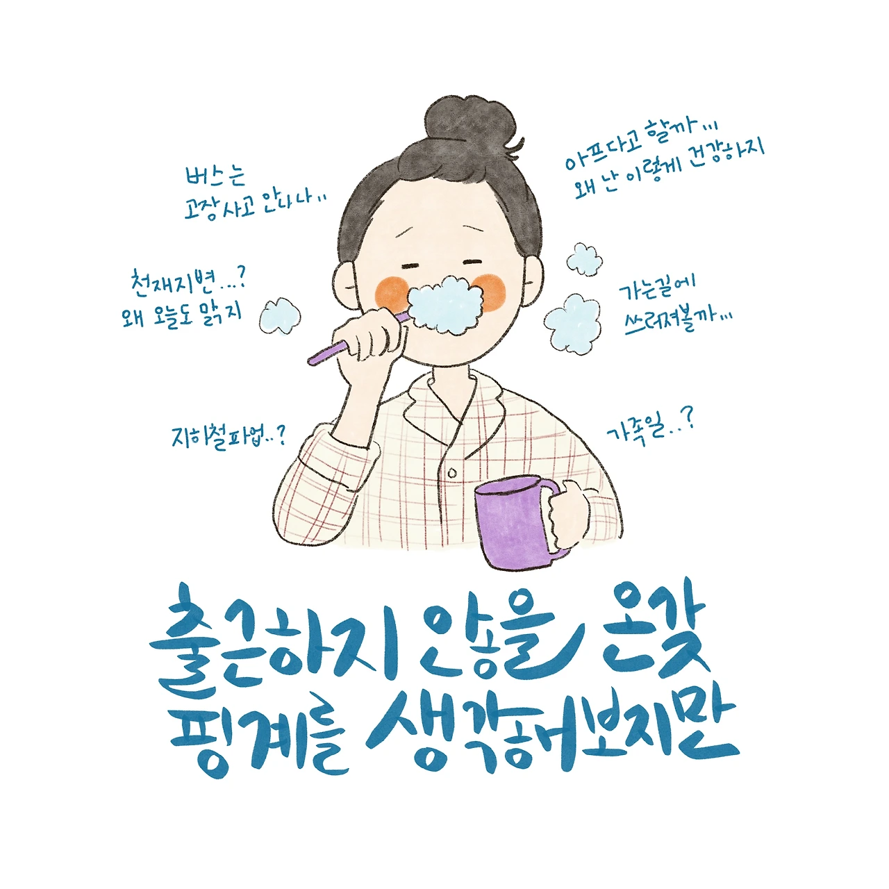 등등... 정말 온갖 핑계를 다 대어 보지만 그 복잡한 머릿속과는 반대로 몸은 아주 착실하게, 배어있는 루틴을 진행해 나간다. 양치를 하고 옷을 입고 가방을 챙기고,,,