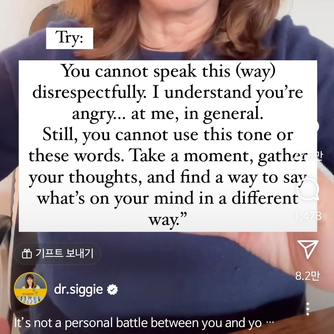 존경하는 Dr.Siggie 님의 인스타그램 계정에는 양육에 대한 짧고 간결한 그러나 깊은 가르침의 영상들이 많다. 오늘 우연히 접한 영상은 화가 난 아이가 무례하게 굴 때 훈육하는 팁에 관한 것이었다. 무례한 아이에게 확 기분이 상하여 "그렇게 말하지 마" 단순히 지적하는 어른들에게, 개인적인 감정에서 벗어나 대안을 제시하는 코치가 돼라 조언하고 있었다.