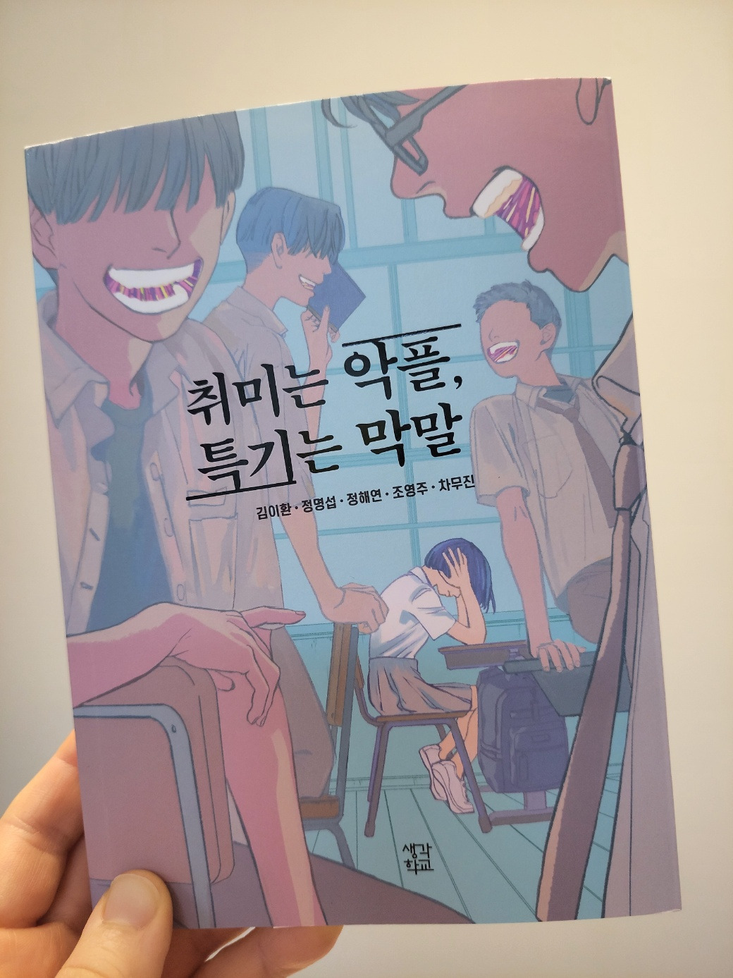 초등 고학년이나 중학생 수준에서 '말'에 대해 함께 고민해 보기에 적당한 책으로 '취미는 악플, 특기는 막말 / 김이환 외 / 생각학교 / 2020년 출판'을 선정해서 독서동아리 학생들과 읽었다.