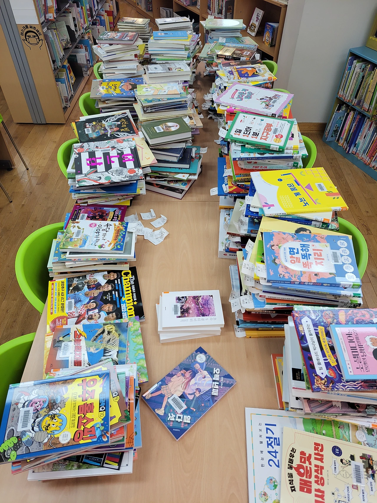 그래도 서가에 먼지 쌓인 책들은 아마 이 야단법석을 보며 '나도 저렇게 환영받는 신입 도서 시절이 있었지….' 회상하며 무척 부러워하고 있을지도 모르겠다. 그러고 보니 코로나 시국에 들어온 새 책들은 신입 도서라고 환영해 줄 아이들도 없었다. 소리소문 없이 수많은 책 사이로 흔적을 감춘 작년 신간들이 생각났다. 갑자기 도서관에 울려 퍼지는 청개구리들의 대출 타령이 감사하다. 대출 타령의 열기가 식어버리기 전에 한시바삐 신간 업무를 마무리해야겠다. 책 상자를 뜯고 노끈을 자르는 손이 분주해진다. 또 야근 각이닷!