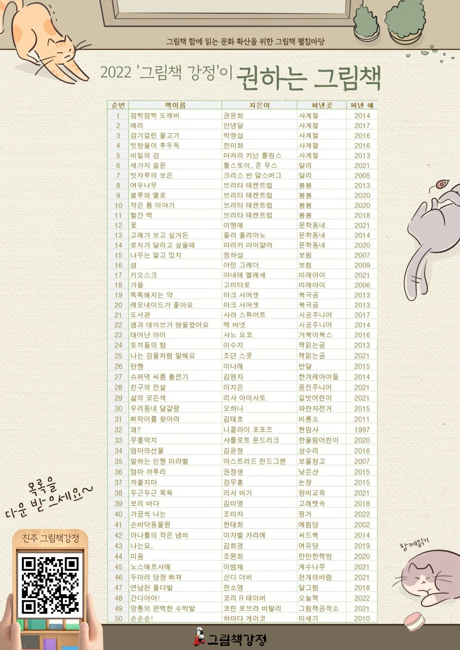 그렇게 나의 독서 인생 2막이 시작되었다. 독서모임에서의 시간이 즐겁고 보람된 만큼 생활 속에서 독서의 우선순위가 자연스럽게 올라갔다. 전혀 예상하지 못했지만 책을 읽고 여러 사람과 감상을 나누는 경험은 나의 시야를 넓혀 주었고 삶을 풍성하게 만들어 주었다. 스스로를 성찰하게 만들었고 사서로서의 자신감은 덤으로 따라왔다. 같은 주제를 놓고 사색의 시간을 나눈 사람들과는 필연적으로 정말 깜짝 놀랄 정도의 끈끈한 신뢰관계가 형성된다. 그러니 함께 하는 독서는 혼자 하는 독서와는 비교할 수 없을 만큼 큰 힘을 발휘했다. 그림책강정에서 읽었던 좋은 그림책들을 모아 그림책전시회를 열었다. 어른들도 흔히 그림책을 읽고 감상을 나누는 문화가 확산되었으면 하는 구성원들의 마음을 담은 작은 실천이었다.
