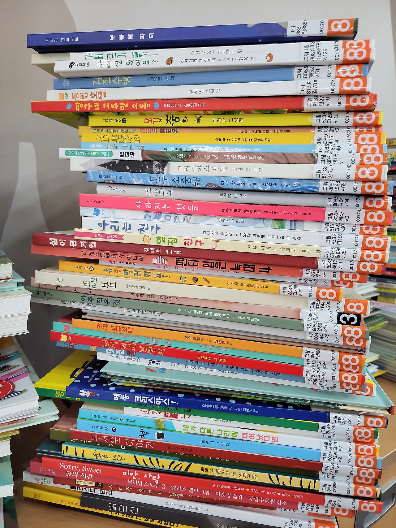 이렇게 수서를 마쳤다고 곧장 책이 들어오는 것은 아니다. 교내 홈페이지에 일주일간 구매예정 목록을 게시해서 학부모나 교직원에게 이의제기 기회를 제공하고, 운영위원회의 심의를 거쳐 품의(실제 주문을 위한 서류 작업)을 할 수 있다. 이렇게 눈으로만 매만지던 단행본들이 지난한 시간을 거쳐 드.디.어. 실물로 도서관에 처음 입성하던 날 오후의 설렘을 나는 여태껏 잊을 수가 없다. 모니터 화면에 사진과 숫자로만 존재하던 책들이 눈앞에 실제로 차곡차곡 쌓이는 걸 보니 레시피로 구경만 하던 요리를 드디어 혀끝으로 맛보는 듯한 기쁨이 일렁였다.