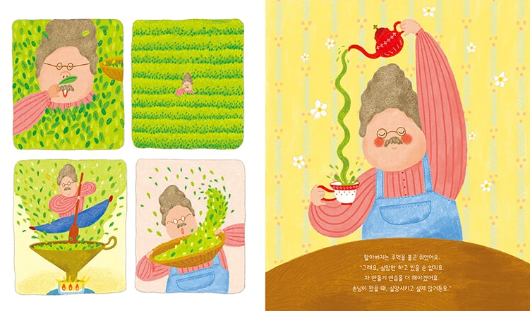 수많은 퇴직자들이 경험하는 과정이다. 원치 않는 퇴직과 떠밀리듯 시작하는 준비 안된 개업. 그리고 예정된 폐업과 함께 사라진 퇴직금. 현실은 그림책처럼 화목하지 않다. 다툼과 갈등으로 가정 내 불화가 커지는 경우가 부지기수다. 그림책 속 할아버지는 주인공답게 대단한 사람이다. 직장 생활하면서도 아내와의 관계를 잘 꾸려왔고, 그 와중에 '차'라는 취미생활도 병행하고 있었으며, 손님 한 명 없는 가게에서도 쉽게 좌절하지 않는 긍정마인드까지.