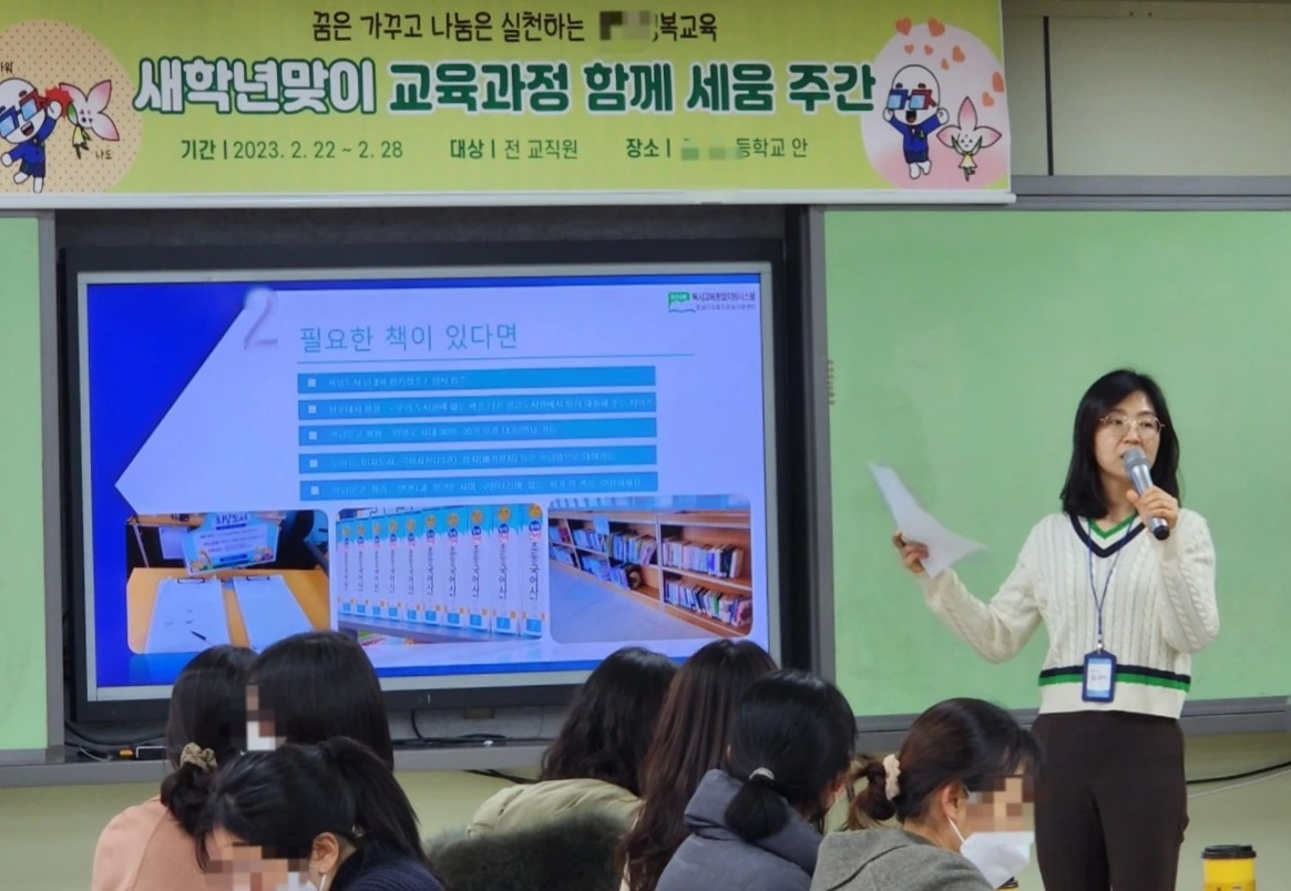 3월 개학을 앞둔 일주일 전. 겨울방학 동안 켜켜이 쌓인 먼지가 봄바람과 함께 사방으로 흩날리며 술렁이는 때다. 전근 오신 17명의 선생님 포함 모든 교직원들은 '새 학년맞이 교육과정 함께 세움 주간'을 시작했다. 2~5년에 한번 씩 근무지를 옮기는 교사의 직업 특성상 근무지를 옮겨서 낯선 사람들과 새로이 적응해야 하는 스트레스를 서로 잘 알기에 기존 근무자들은 새로 오는 교직원들을 따스히 맞아주고 싶은 마음이 크다.