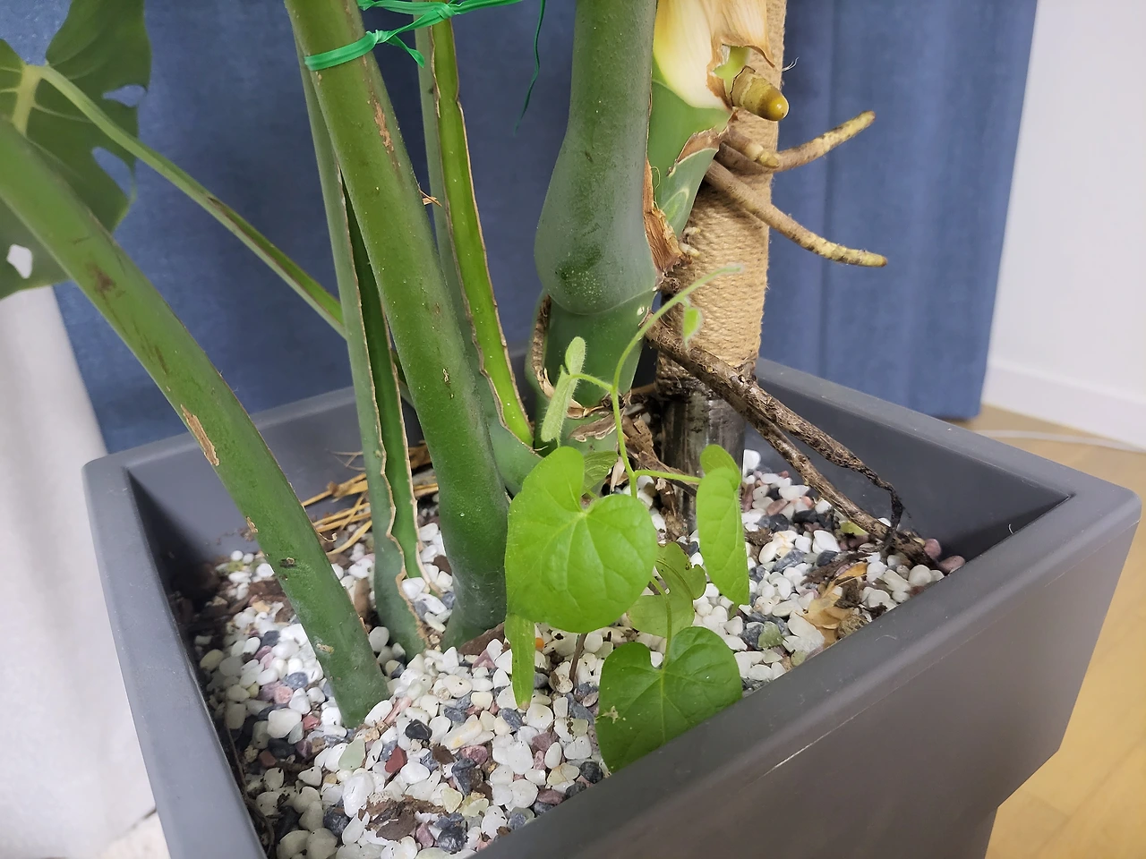 참! 너 친구 생겼더라? 왼쪽 옆구리 아래 자그마하게 올라온 나팔이! 진즉 눈치는 채고 있었지~ 작년에 개화에 실패한 나팔꽃들이 우리 집에서 다 사라진 줄 알았는데 네가 하나 품고 있을 줄은 정말 상상도 못 했어~! 긴 겨울 고이 품고 있다 봄에 싹 틔우는 거 도와주느라 애썼어~ 작은 나팔이가 무럭무럭 자라서 네 키만큼 덩굴을 감고 올라가면 정말 멋질 것 같아. 둘이 가을까지 사이좋게 지내기를 응원할게~