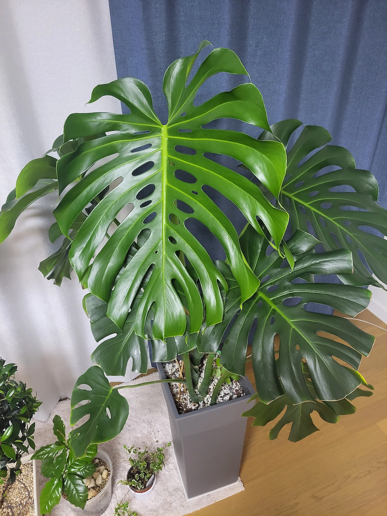 나의 멋진 몬스테라야~ 우리 집에 와 주어서 고맙고, 부족한 내 정성 탓하지 않고 잘 자라줘서 고마워. 네가 우리 집 거실 랜드마크인 거 알지? 너는 내 식린이 인생에 금메달 같은 존재야~ 뭐든 부족한 게 있으면 부담 갖지 말고 말해줘. 작년처럼 잎 끝이 바싹 마르도록 혼자 끙끙대기 없기! 테라테라 몬스테라야 사랑해~