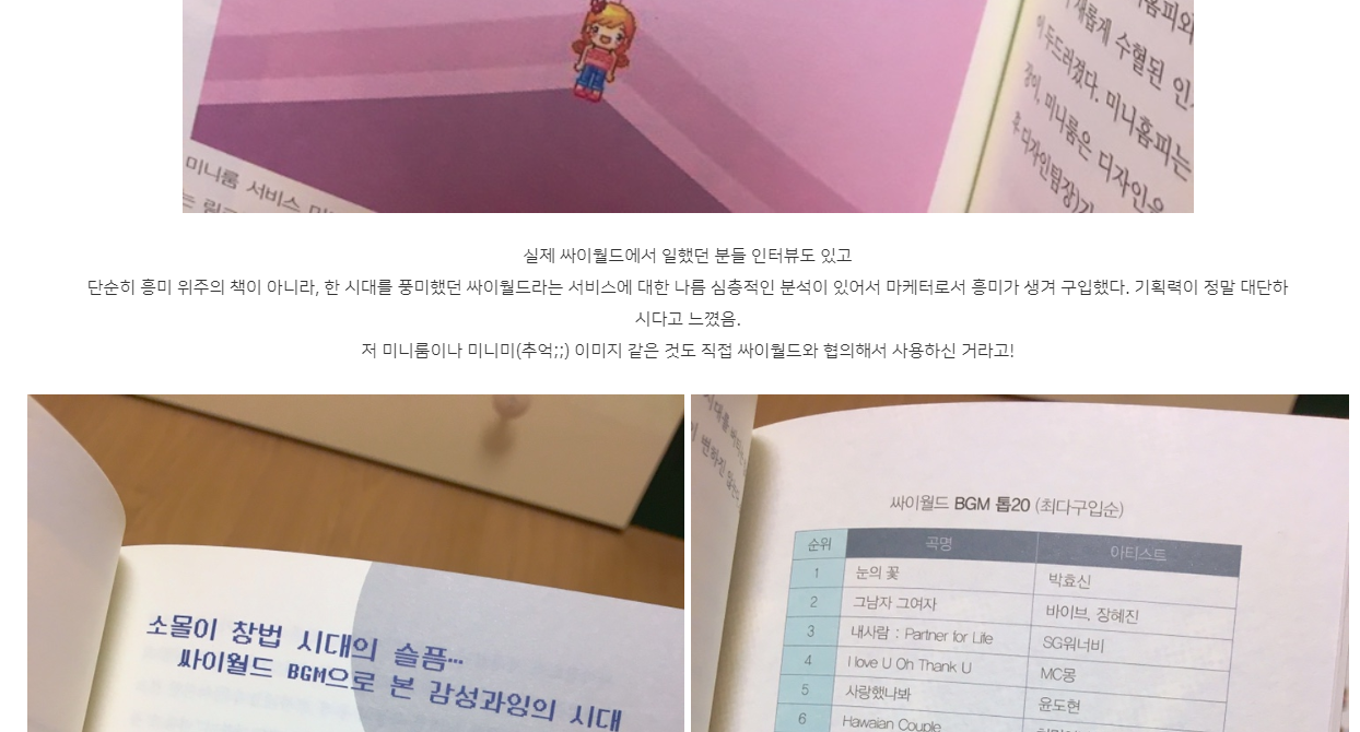 <아래/싸이월드 감성을 소개한 블로그글 인용>