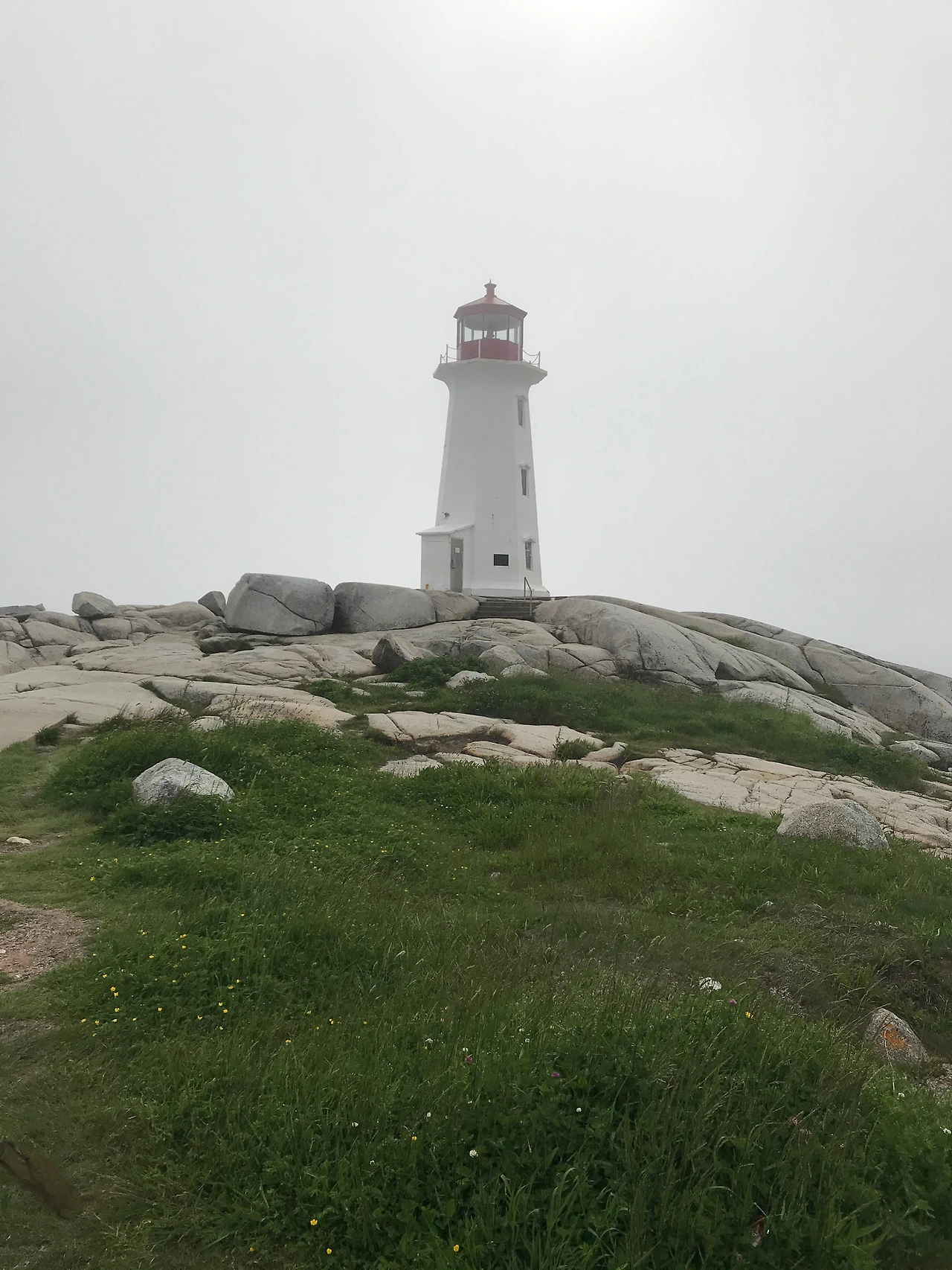 페기스 코브는 동네 이름으로 영어 명칭은 'Peggy's Cove'. 이름의 유래 썰 중 하나로 조난 사고를 당한 어린 여자아이가 이곳에서 살아남았고 아이는 너무 어려서 이름을 기억하지 못했다고 한다. 한 가족이 이 여자아이를 입양했고 페기라는 이름을 붙여주었다고 한다. 페기는 자라서 그곳 거주민과 결혼했고 마을은 그녀의 이름을 따서 페기가 사는 코브, 즉 페기스 코브라고 하며 관광객을 매료시켰다. 사실 페기스 코브는 입구에 차를 대고 걸어서 들어가는 길이 예쁘다. 이제 막 초여름이라 여기저기서 피어난 아기자기한 꽃들과 알록달록하게 페인트칠 한 집들이 한 폭의 그림 같다. 길을 따라가다 보면 등대가 나온다. 등대는 사실 언제 봐도 감흥이 없다... 아... 등대구나... 하지만 이내 곧 장엄한 바위가 눈에 들어온다. 긴 세월 바람과 파도를 맞으면서 여기저기 갈라진 바위들은 저만치 떨어져 있는 사람들이 너무나 작아 보일 정도로 무척 장엄하다. 오히려 바위가 만들어낸 그림이 더 장관이다. 대체로 잔잔한 우리 집 앞바다 파도와 달리 바람이 꽤 불어서 그랬던지 오랜만에 바위에 파도가 부딪치는 소리도 들을 수 있어서 속이 뻥 뚫린다. 바다는 언제 봐도 멋있고 언제 봐도 우리를 환영한다. 일행들은 날씨가 맑았으면 더 좋았을 뻔했다고 했지만 날씨가 흐린 가운데 우뚝 서 있는 등대의 모습이 비장하게까지 느껴졌다. 흐릿한 안개, 웅장한 바위, 비장한 등대가 그려내는 그림이 일품이다.