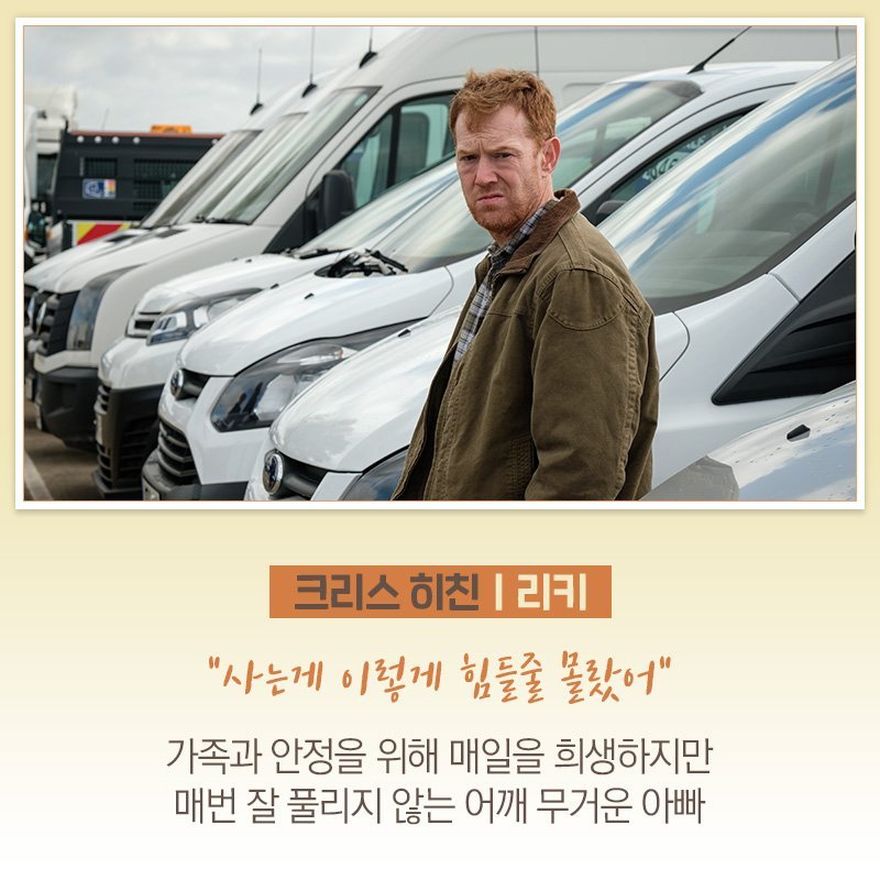 <켄 로치 감독>이라는 이유만으로도 영화를 봐야 할 이유가 충분하지만, 영화를 보고 나면 '현재'를 살아가는 우리, 버티기 위해 발버둥 치는 '나'에게 있어 '중요한 게 무엇인가?'에 대해서 더 많은 생각을 하게 만든다.